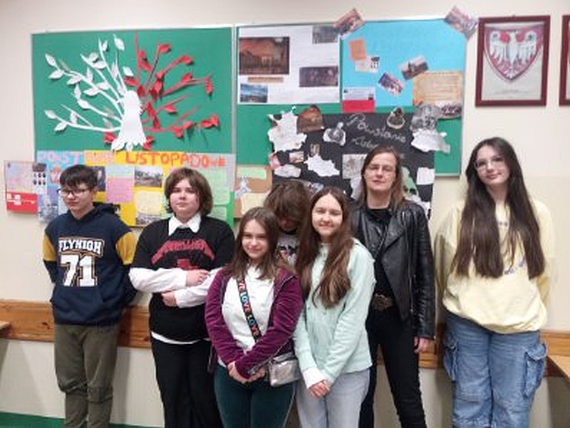 W roku szkolnym 2023/2024 na lekcjach historii realizowano różne projekty – rocznicowe i okolicznościowe oraz wynikające z treści programowych. Metoda projektu stwarza szansę rozwijania zainteresowań historycznych uczniów, zaciekawienia ich problematyką historyczną. Przyczynia się do pogłębienia i poszerzenia wiedzy, niezwykle istotnej dla określenia swojej tożsamości i pochodzenia, nie tylko tej historycznej, ale również z zakresu innych nauk, blisko powiązanych z historią. Uczniowie, pracując nad projektem, mieli możliwość nabywania wielu umiejętności, kształtowania samodzielności i odpowiedzialności, podejmowania działań w grupie, rozwoju kreatywności oraz doskonalenia wielu pozytywnych cech charakteru. Wykonane prace uczniów zaprezentowano w formie wystaw na korytarzu szkolnym.