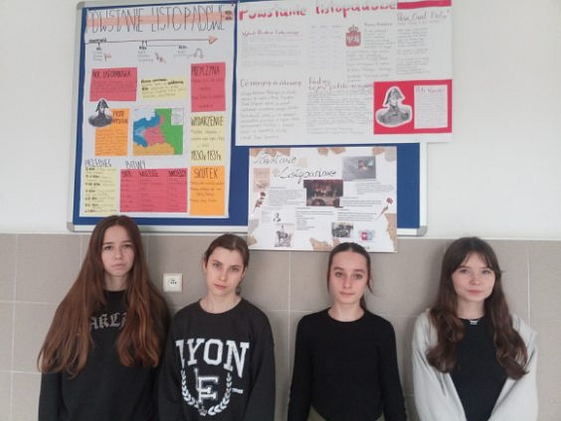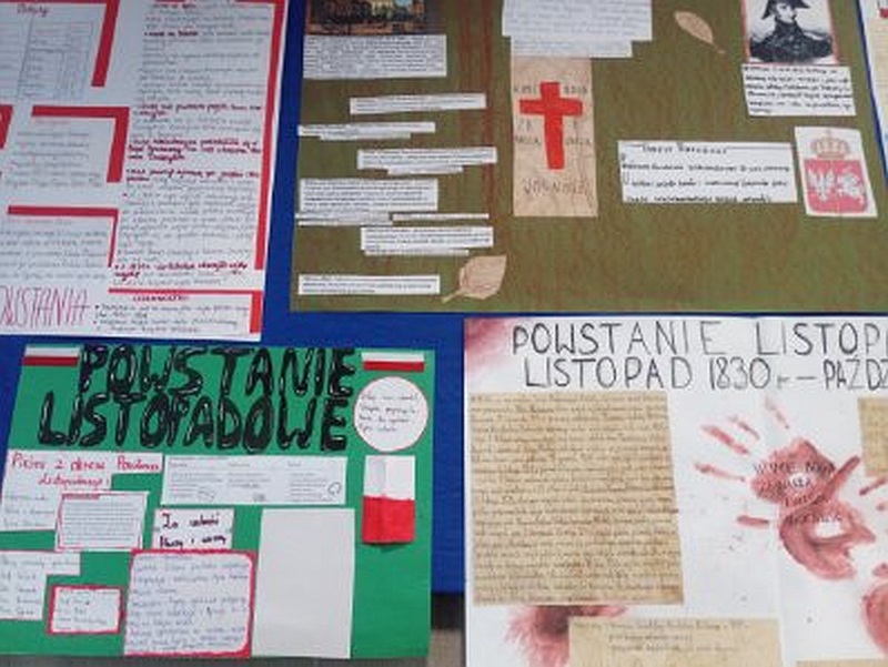 - „Powstanie listopadowe” – uczczenie rocznicy wybuchu powstania, projekt w klasach 7;