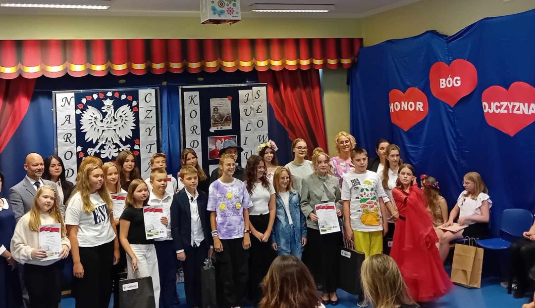 Uroczyste podsumowanie tego projektu miało miejsce 19.09.2024 r. podczas spotkania w SP 11 podsumowującego szkolną odsłonę Narodowego Czytania „Kordiana” z udziałem uczniów i ich rodzin, nauczycieli, dyrekcji oraz zaproszonych gości. Laureaci konkursu otrzymali pamiątkowe dyplomy i cenne nagrody rzeczowe, ufundowane przez Fundację Prometeo oraz Radę Rodziców, które zostały wręczone im przez Panią dyrektor Bogusławę Czarny, Pana prezydenta Radosława Swoła oraz Panią prezes Fundacji Prometeo Katarzynę Cygan.
