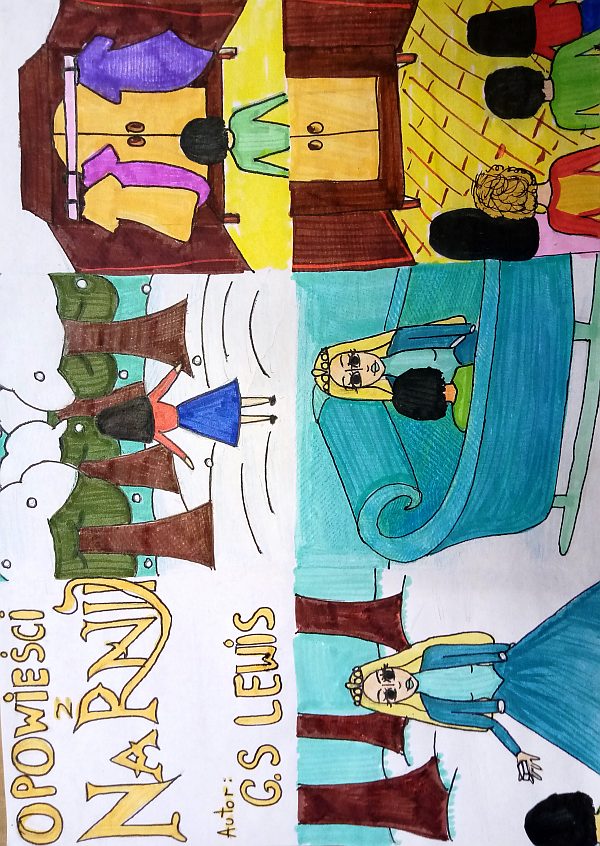 Uczniowie klas piątych zainspirowani powieścią C.S. Lewisa „Opowieści z Narnii ” na lekcjach plastyki wykonali prace przedstawiające przygody bohaterów w pięknej i tajemniczej krainie zamieszkałej przez niezwykłe stworzenia. Prace powstały w ramach ogólnopolskiej akcji oraz realizacji projektu z plastyki „Cała Polska czyta dzieciom”. Zapraszamy do obejrzenia naszej internetowej wystawy. Naszym uczniom gratulujemy ciekawych prac .