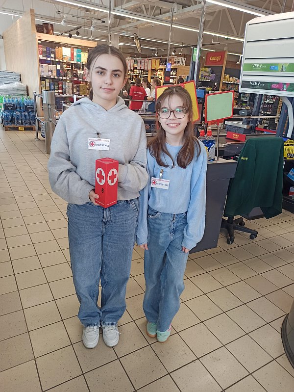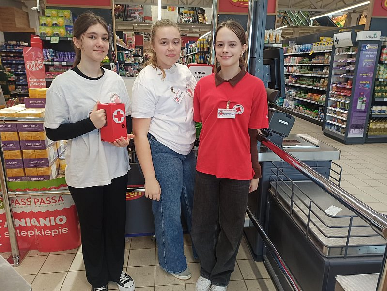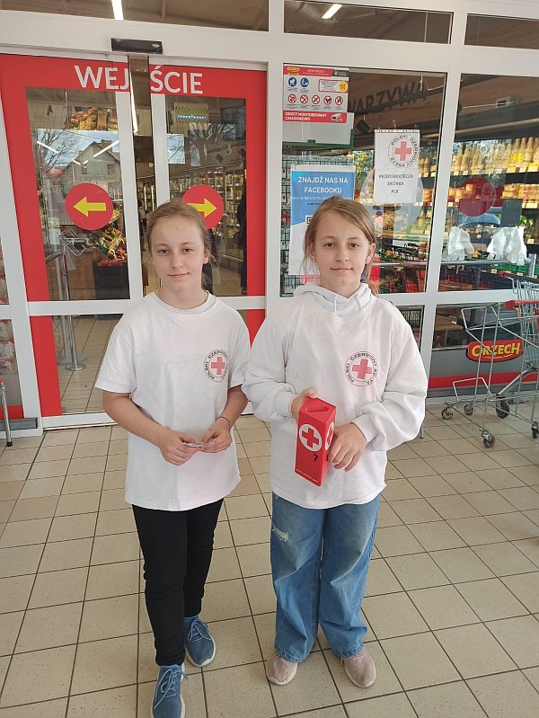5.04.2025r w sobotę Szkolne Koło PCK przy Szkole Podstawowej nr 11 w Mielcu brało udział w przedświątecznej zbiórce pieniężnej i żywnościowej organizowanej przez Oddział Rejonowy PCK w Mielcu pod hasłem ,,Darów moc na Wielkanoc”. Miejscem akcji był sklep ORZECH przy ul. Wolności 164. Uczniowie z klas : 8d, 8c, 7b, 7d, 6e, 5b pod opieką p. Teresy Hawron-Cygan, p. Martyny Hawron-Drewnickiej, p. Moniki Wałek i przedstawiciela Oddziału Rejonowego PCK Franciszka Sajek zebrali 12 reklamówek żywności i kwotę 1208,35 zł. Wykonaliśmy 13 paczek świątecznych z żywnością i słodyczami. Trafiły one do tych rodzin z naszej szkoły , które tego najbardziej potrzebują. Pieniądze wpłacamy do Oddziału Rejonowego PCK w Mielcu dla przedświątecznego wsparcia rodzin. Dziękujemy za bezinteresowną pomoc. ,,Dość się weseli serce, gdy daje i sobą się dzieli”.