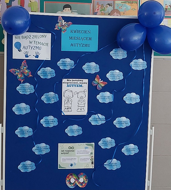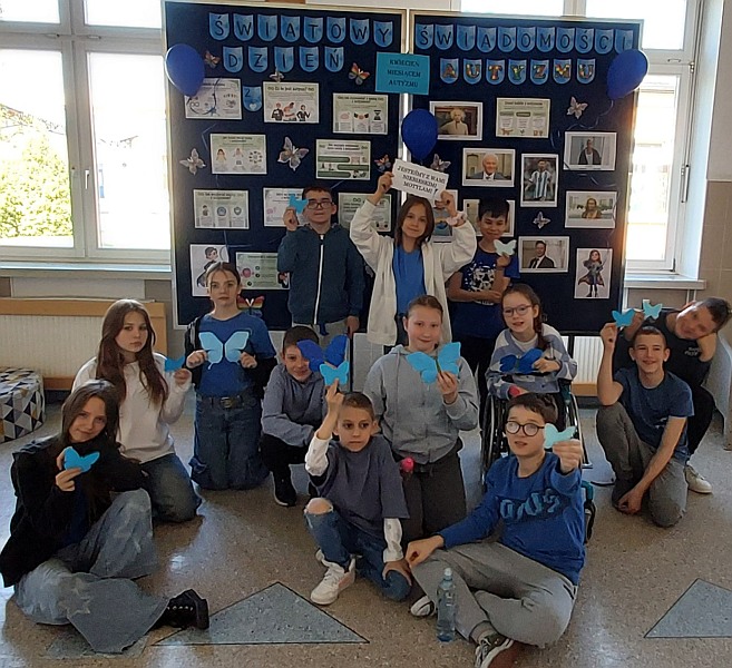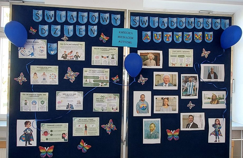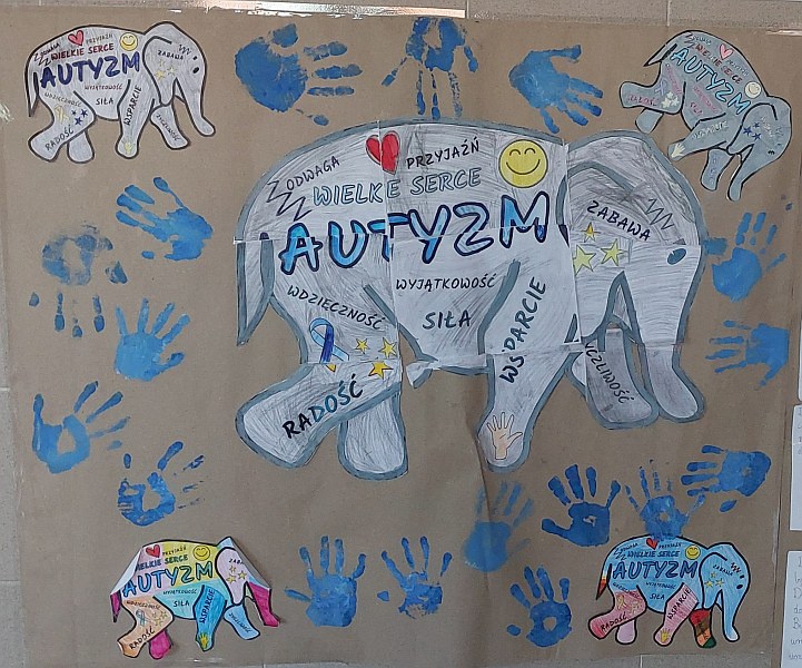 W kwietniu nasza szkoła włączyła się w obchody Miesiąca Świadomości Autyzmu, podejmując różnorodne działania, które miały na celu zwiększenie empatii, zrozumienia i akceptacji wobec osób w spektrum autyzmu. Uczniowie klas 1-3 wzięli udział w zajęciach plastycznych, kolorując symbolicznego niebieskiego słonia – znak solidarności z osobami autystycznymi. Starsze klasy uczestniczyły w lekcjach wychowawczych poświęconych tematyce autyzmu, poznając trudności, z jakimi mierzą się osoby w spektrum i ucząc się, jak możemy je wspierać na co dzień. Przygotowano również gazetki informacyjne prezentujące znane osoby w spektrum autyzmu, które pokazują, że różnorodność neurologiczna nie jest przeszkodą w realizacji pasji i osiąganiu sukcesów. Kwiecień był czasem refleksji, rozmowy