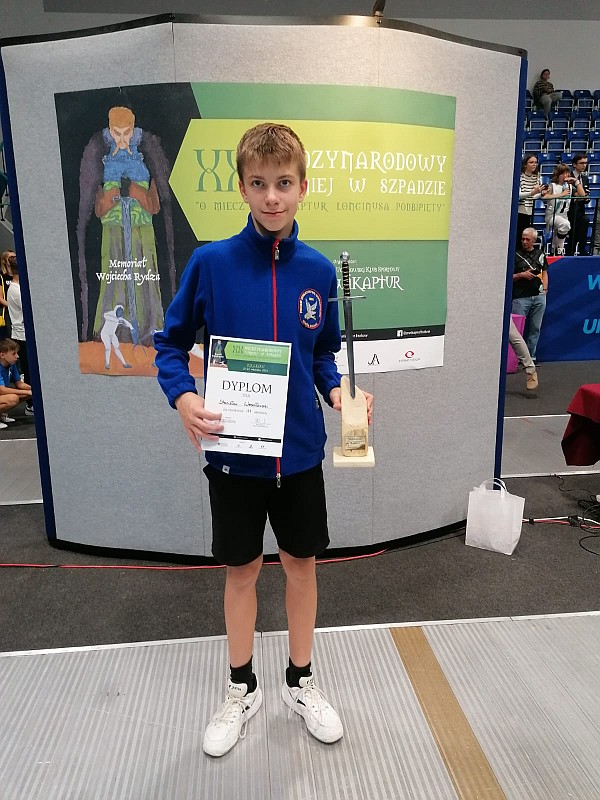 Nasz uczeń Stanisław Wesołowski z klasy 7d jest zawodnikiem PTG Sokół Mielec. I to w tej dyscyplinie sportowej pod opieką trenera Zbigniewa Żoli osiąga znakomite wyniki! W sezonie 2024/2025 został powołany do Kadry Narodowej Polski w dyscyplinie szermierka, broń: szpada w kategorii wiekowej Młodzik (U-14). Bierze udział w licznych zawodach, a najważniejsze jego osiągnięcia w bieżącym sezonie to: