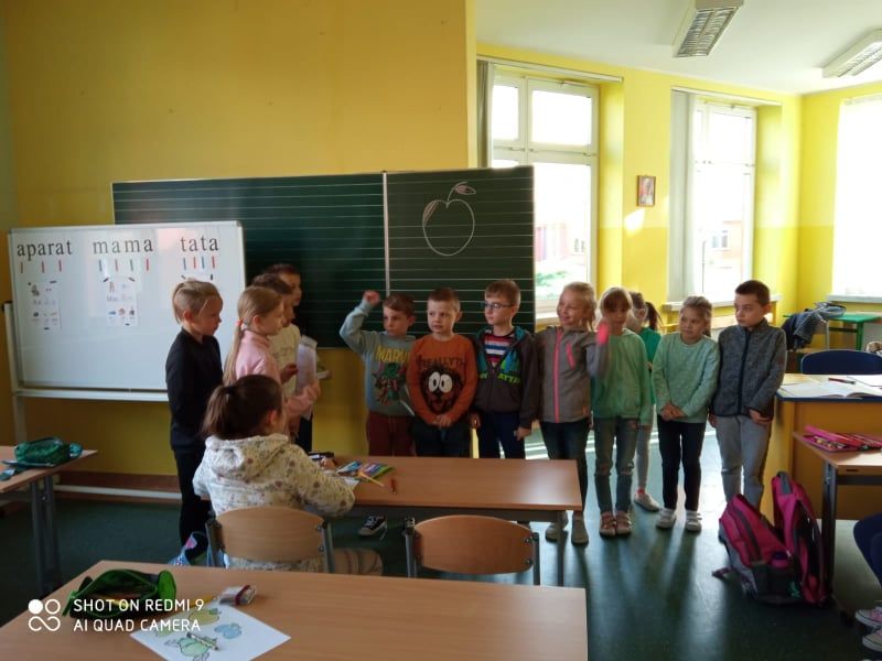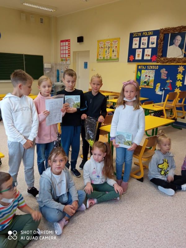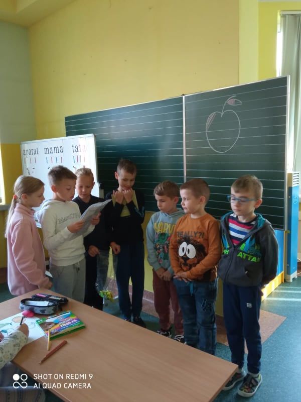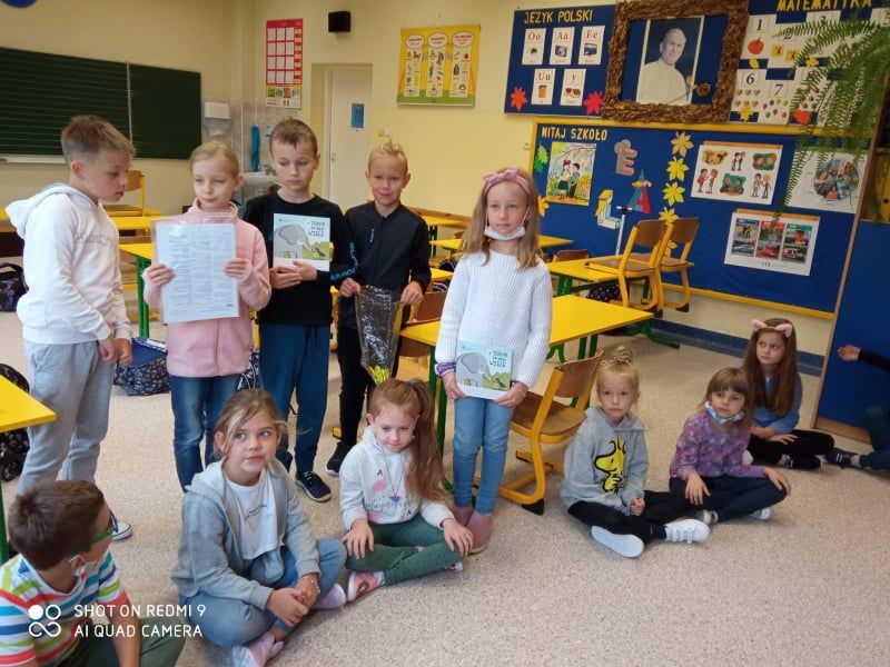 2. Uczniowie Małego Samorządu Uczniowskiego przygotowali i zaprezentowali dla klas młodszych zagadki. Każdy pierwszak otrzymał symboliczną nagrodę (odblaski, książeczki).