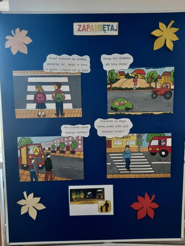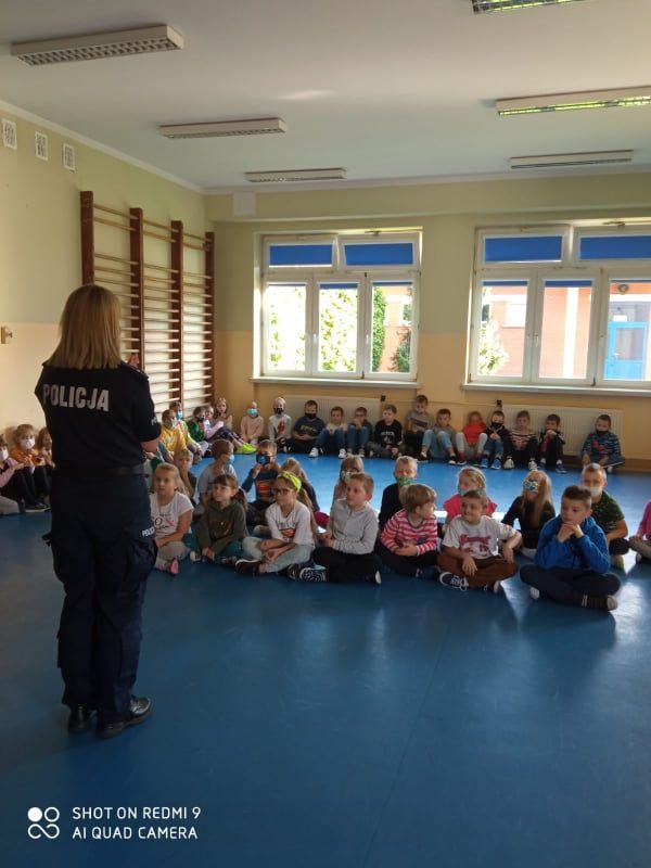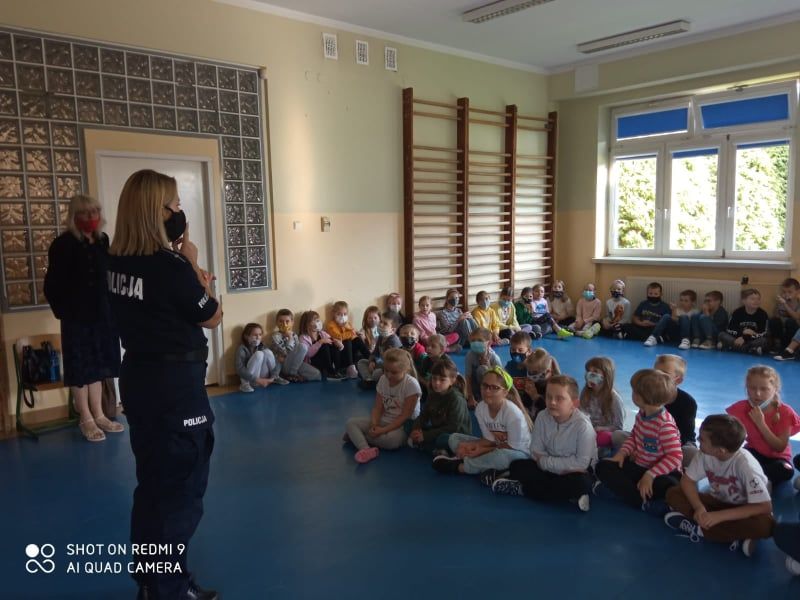 Podsumowując całą akcję w dniu 27 września 2021r. odbyło się spotkanie edukacyjne klas I-III z Panią z KPP w Mielcu. Celem prelekcji było przypomnienie zasad bezpieczeństwa w szkole i poza nią. Policjant rozmawiał z dziećmi o podstawowych zasadach bezpieczeństwa w ruchu drogowym oraz radził jak unikać niebezpieczeństw, na które narażeni są pokonując codzienną drogę do szkoły i domu.