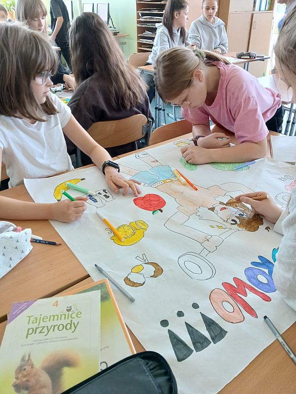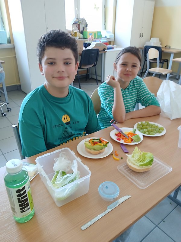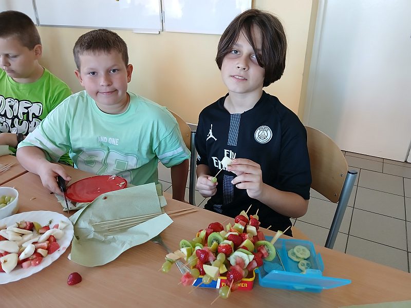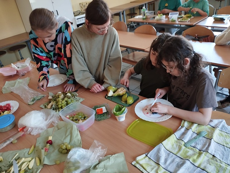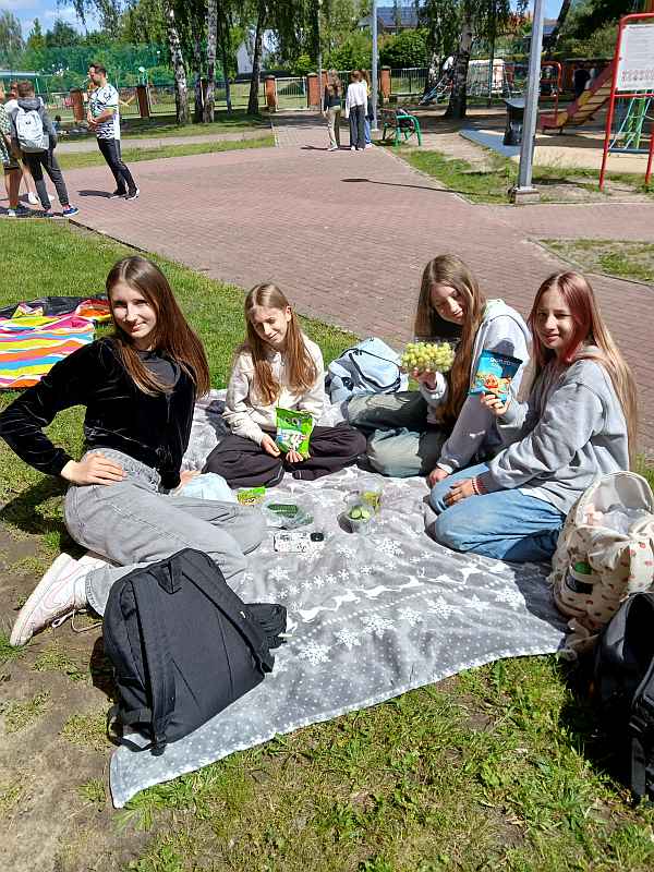 Piątek był zielonym dniem w szkole. Uczniowie przygotowali smaczny i zdrowy posiłek: surówki, sałatki , szaszłyki i koktajle . Wyszli na trawę wokół szkoły na ,,Zielony piknik na sportowo”. Dzieci aktywnie uczestniczyły w różnych atrakcyjnych formach zajęć zapoznając się i utrwalając sobie zasady zdrowej ścieżki życia.