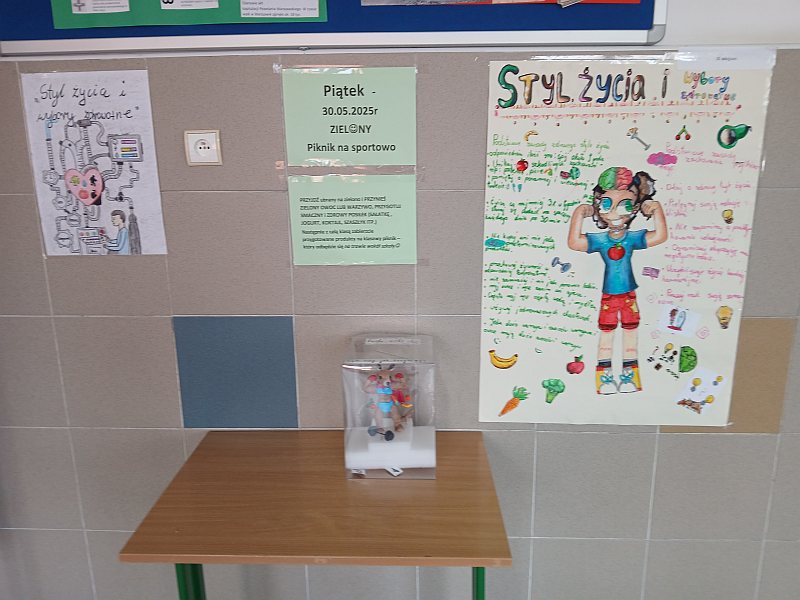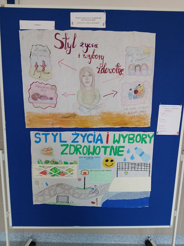 Wyniki konkursu plastycznego w Tygodniu dla zdrowia pod hasłem: ,,Styl życia i wybory zdrowotne”. I miejsce: Maziarz Kaja, Pelczar Emilia, kl.6e, Rejman Liliana, Klich Iza, Korczak Nikola, kl.7d, II miejsce: Wiącek Zofia, kl.5d, Kozak Natasza, Kusek Kornelia, Łanocha Paulina, Gutowska Ala, kl.4e, III miejsce: Jankowska Maja, Lewiński Fabian, Romanowska Lena, kl.6a, Bik Maja, Wiatrowicz Lila, Szelest Lila, 5b, Tomaszewska Julia, Dudajek Karolina, 7c, Wyróżnienia: Graniczka Maja, Juda Eliza , 4d, Pozostali uczniowie: Kusowska Roksana, Taraszka Weronika, kl.7b,Pitner Nadia, Maziarz Marysia, Jakubowska Milena, kl.5a, Szot Anna, Kwaśniewska Anna, Kozik Wiktoria 4a, Gruszecka Jagoda, Ochęduszko Zuzia, Kulawik Olga, kl.4c. Wyniki testu matematycznego dla klas 5 pod hasłem: ,,Żyj zdrowo i trzymaj formę”: