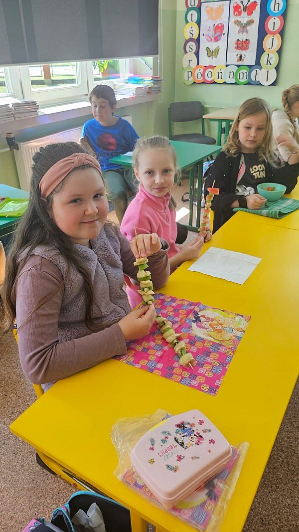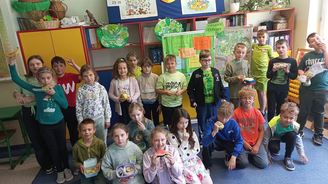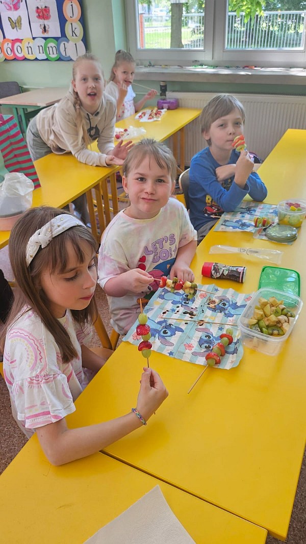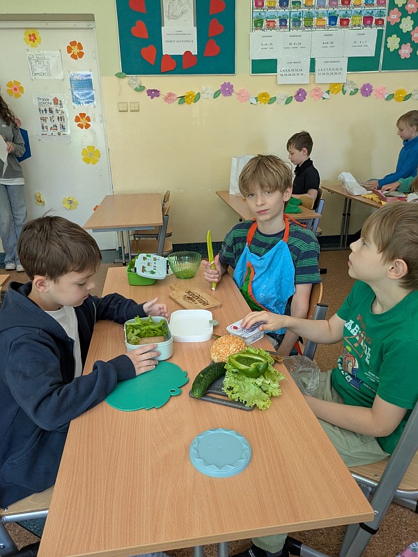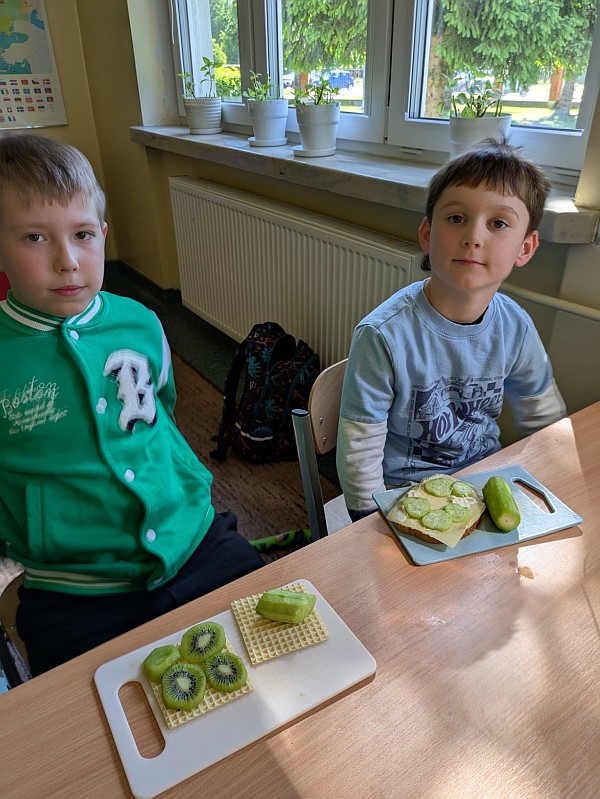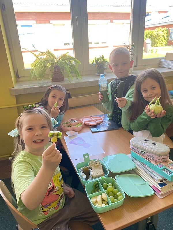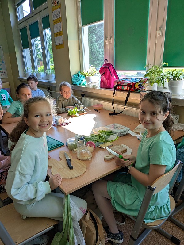 Zielone dni w klasach młodszych promowały wśród uczniów spożywanie warzyw i owoców oraz ruch na świeżym powietrzu. Wychowawcy prowadzili w klasach pogadanki i prezentacje o zdrowotnych walorach zielonych warzyw i owoców. Uczniowie przygotowali w grupach kolorowe plakaty promujące zdrowe posiłki z zielonych owoców i warzyw i zdrowy styl życia. W czasie zajęć w świetlicy szkolnej pod kierunkiem wychowawców p. Aleksandry Zając i p. Patrycji Suchy wszyscy włączyli się w międzynarodową akcję MOVE WEEK (Europejski Tydzień Ruchu). Jest to święto aktywności fizycznej, które promuje korzyści wynikające z aktywnego stylu życia. Uczniowie brali udział w klasowych piknikach i grach oraz zabawach na świeżym powietrzu. Samodzielnie i chętnie przygotowali zdrowe kanapki, koktajle czy też szaszłyki.