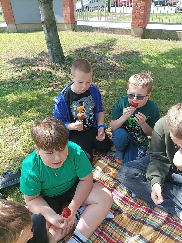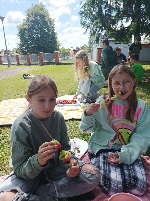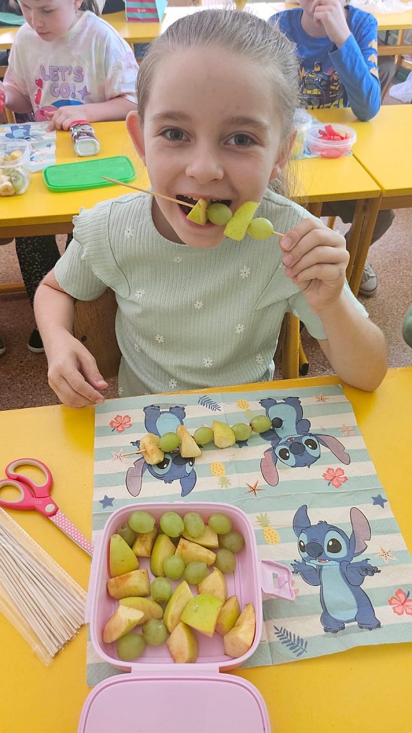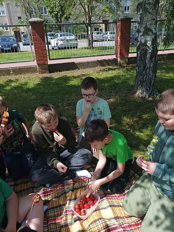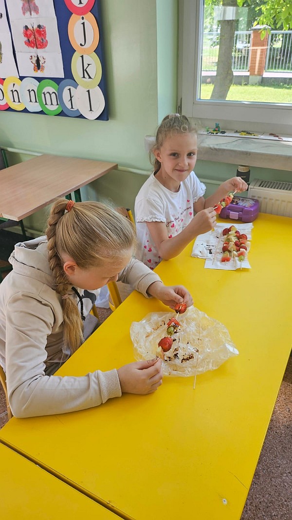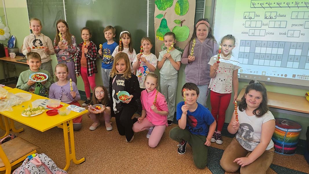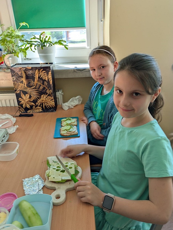 Zielone dni w klasach młodszych promowały wśród uczniów spożywanie warzyw i owoców oraz ruch na świeżym powietrzu. Wychowawcy prowadzili w klasach pogadanki i prezentacje o zdrowotnych walorach zielonych warzyw i owoców. Uczniowie przygotowali w grupach kolorowe plakaty promujące zdrowe posiłki z zielonych owoców i warzyw i zdrowy styl życia. W czasie zajęć w świetlicy szkolnej pod kierunkiem wychowawców p. Aleksandry Zając i p. Patrycji Suchy wszyscy włączyli się w międzynarodową akcję MOVE WEEK (Europejski Tydzień Ruchu). Jest to święto aktywności fizycznej, które promuje korzyści wynikające z aktywnego stylu życia. Uczniowie brali udział w klasowych piknikach i grach oraz zabawach na świeżym powietrzu. Samodzielnie i chętnie przygotowali zdrowe kanapki, koktajle czy też szaszłyki.