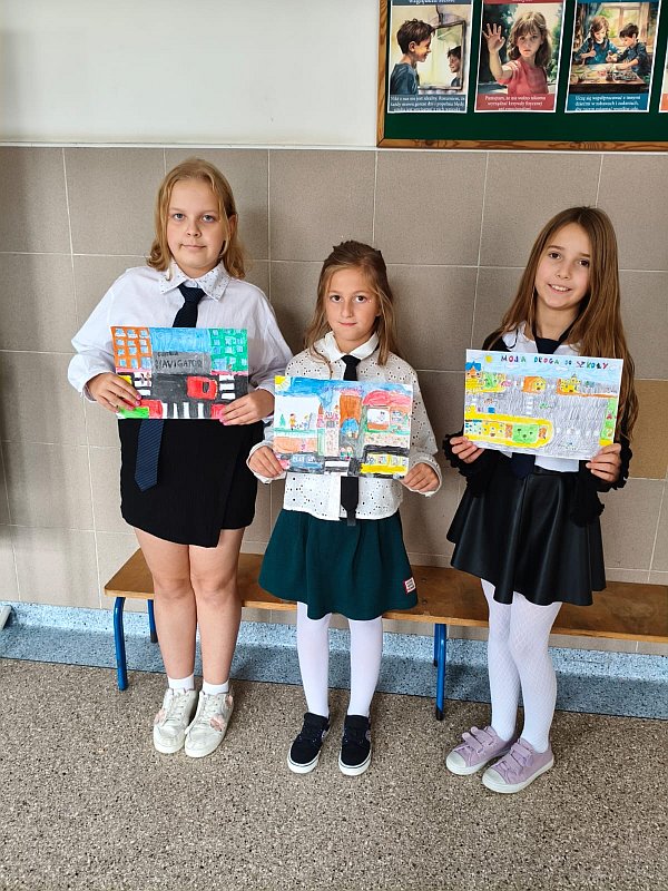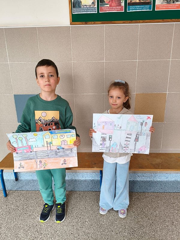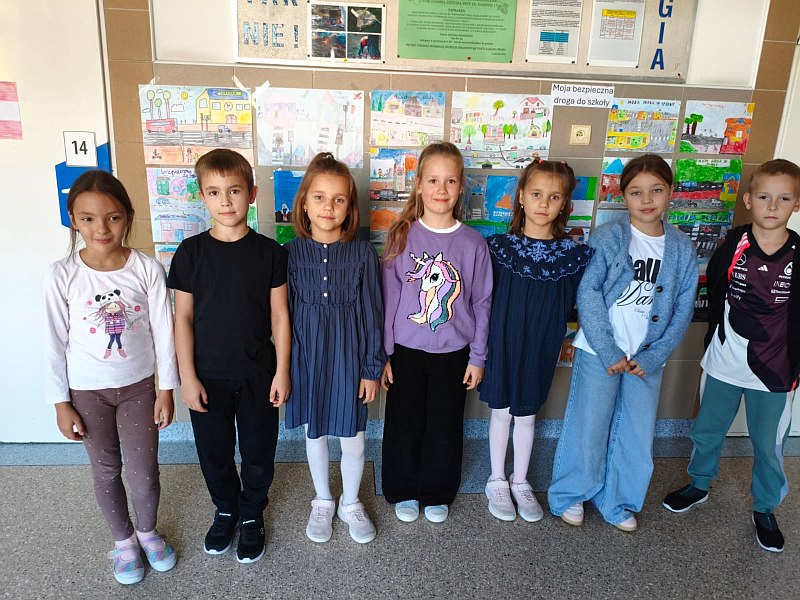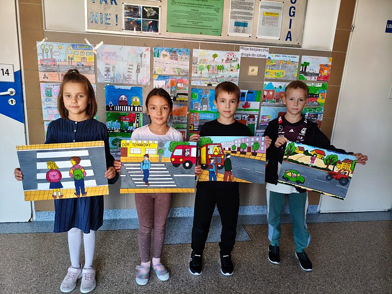 Jak co roku w naszej szkole odbyła się akcja ,,Tydzień dla bezpieczeństwa”. Pod czujnym okiem nauczycieli dzieci z klas I – III powtórzyły zasady przechodzenia przez jezdnię oraz utrwaliły znajomość najważniejszych znaków drogowych. Kolorowały obrazki, oglądały filmy edukacyjne, rozwiązywały zagadki prezentowane przez uczniów klasy II c. Wzięły również udział w konkursie plastycznym ,,Moja bezpieczna droga do szkoły”, w którym wyróżniono prace następujących uczniów: Emilia Płaczek, Wiktor Mordka – kl. I c, Julia Szpara kl. II b, Antonina i Maja Gacoń - kl. II c, Judyta Korzeń, Hanna Rostkowska, Lila Trzpis - kl. III d. Wiedza zdobyta podczas akcji, na pewno pomoże wszystkim dzieciom, bezpiecznie uczestniczyć w ruchu drogowym.