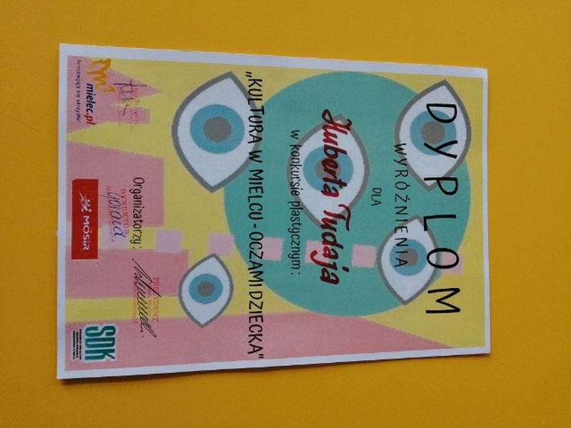 1 czerwca 2022 roku w Spółdzielczym Domu Kultury w Mielcu odbyło się uroczyste podsumowanie kolejnej edycji Mieleckiego Konkursu Plastycznego pt. „ Kultura w Mielcu oczami dziecka ”. Laureatami konkursu z naszej szkoły zostali: