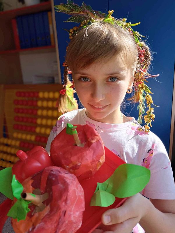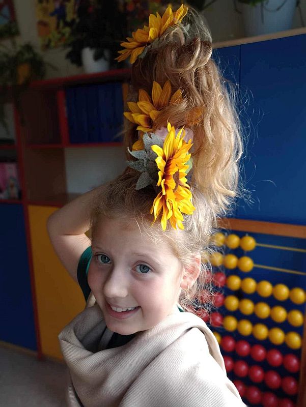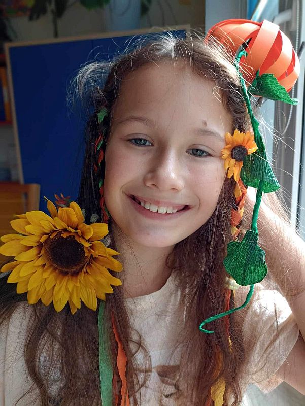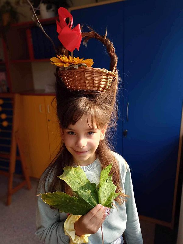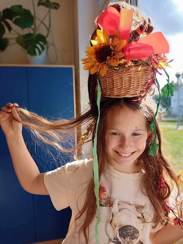 06.10.23r., w ramach zajęć świetlicowych, dzieci uczestniczyły w ciekawym i nietypowym projekcie artystycznym. Z jesiennych darów natury (liście, trawy, gałązki, owoce, kwiaty) , dzieci tworzyły nietypowe fryzury- stylizacje, nawiązujące do tej pięknej kolorystycznie pory roku. Praca przebiegała w parach a jej efekty zostały utrwalone w sesji fotograficznej. Wyobraźnia poszła w ruch a jej efekty prezentujemy państwu na wybranych fotografiach.