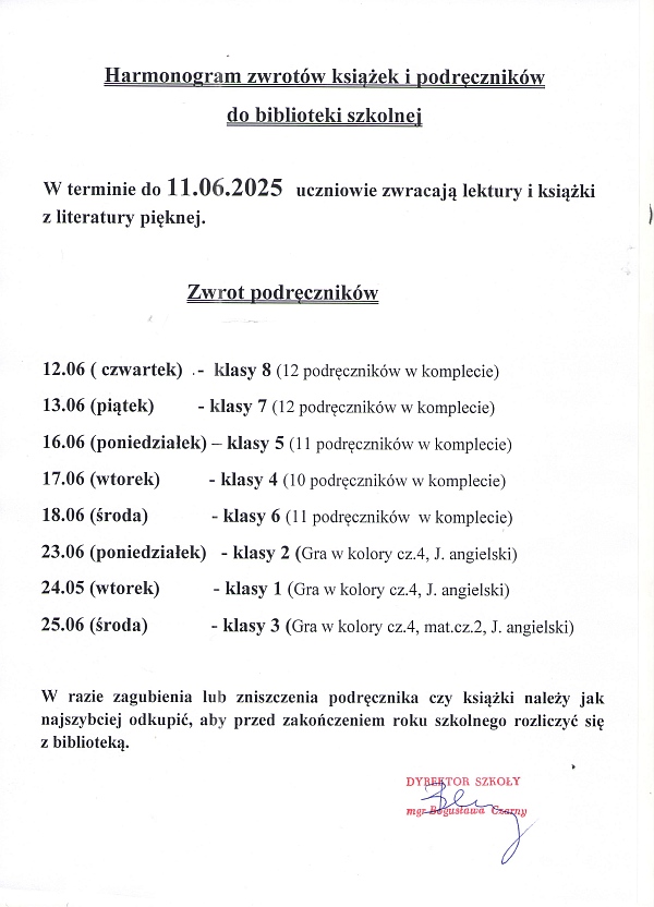 Dzień 20 czerwiec(piątek) 2025r. jest dniem wolnym od zajęć dydaktycznych. W tym dniu stołówka nie zapewnia wyżywienia. Rodzice pracujący, którzy w tych dniach nie mogą zapewnić dziecku opieki zobowiązani są o uzupełnienie i złożenie wniosku o opiekę w świetlicy do dnia 13.06.2025r. Wnioski dostępne w świetlicy szkolnej .